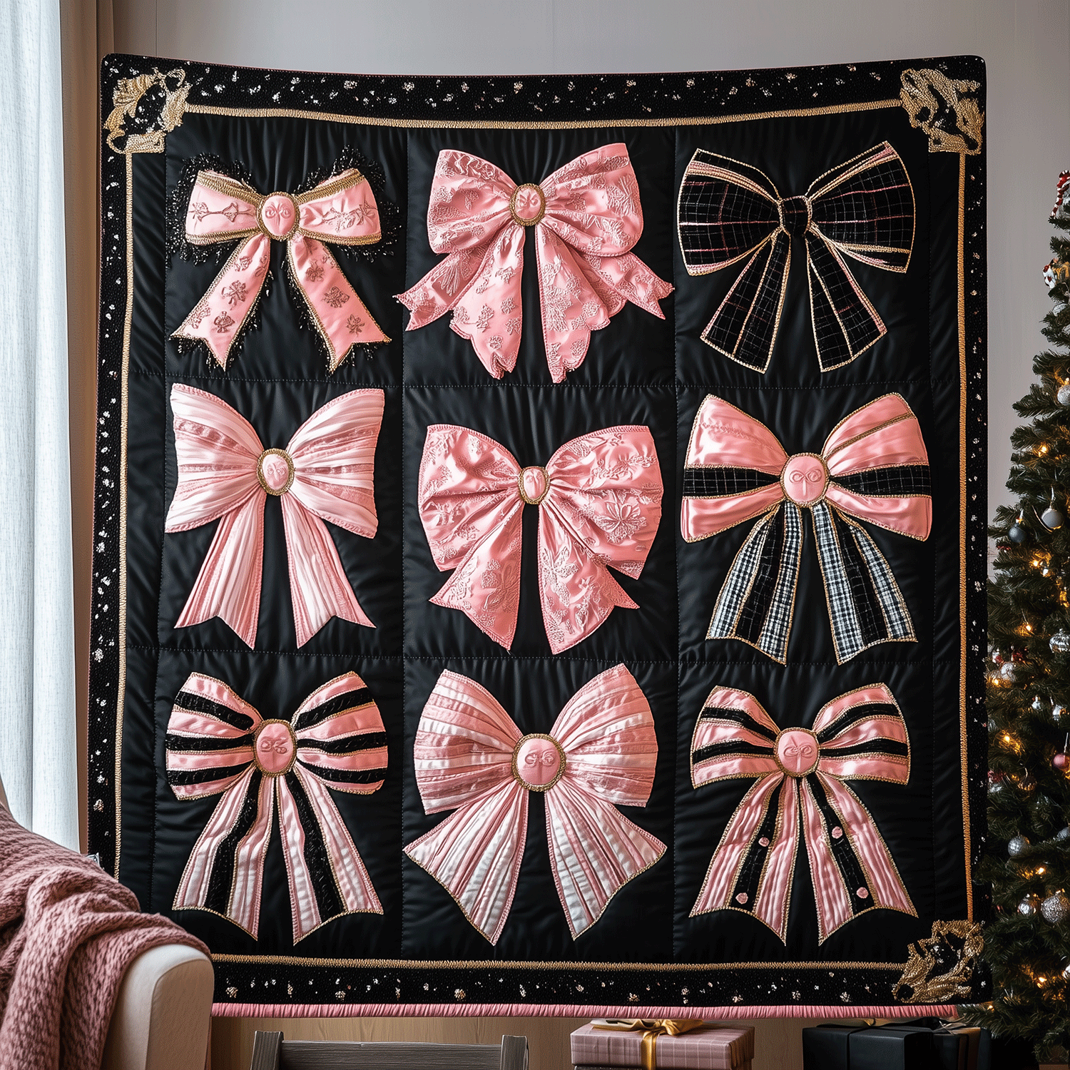Christmas Bow Bliss Quilted Blanket NCU0TH2289